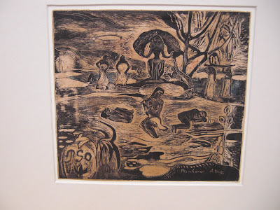 Gauguin. 1894 woodcut. The Food of the Gods. Mahana Atua. Its dominant but altogether fanciful idol; typifies Gauguin's inventive approach to Polynesian mythology