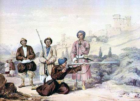 Converts flocked to the banners of the conqueror. He gathered an army, estimated at different times from eight tousand to eighty thousand men. His soldiers were at first a miscellaneous horde, presumably supplying their own swords and mounts. They accepted the Sheik’s rigorous rule and his example of asceticism. The army ration was rice and water; even coffee and tobacco were forbidden. The army was ready for a Holy War but for a time it was not clear who was to be the enemy. The sheik aimed first at the Sublime Porte. The Porte countered by proposing an alliance against the Russians who were pushing south in the Caucasus.