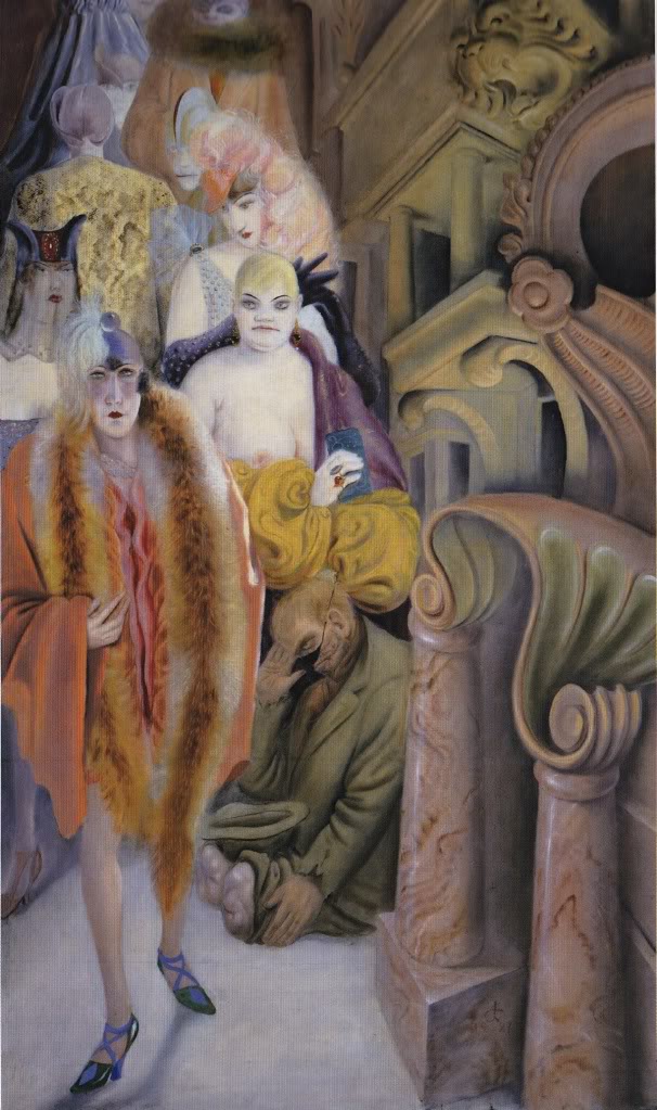 ---Done during the Weimar Republic, near the rise of Hitler, this painting was done full of disgust at the greed, propaganda, and affected patriotism of the time. These grotesque, nightmarish figures stand in as a satirical mirror to his times. ---
