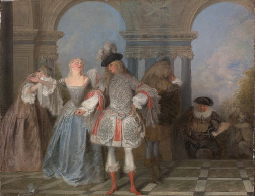John Werestka:Confusion about the ‘subject’ of Watteau’s paintings continues today and, standing in front of them, it is easy to understand why.9 Showing ‘the meeting of men and women, clothed in choice fabrics, and who hold court in a landscape or architectural setting of glorious unreality, dancing with each other, making music or chatting’, these pictures do not seem to be ‘about’ anything. 10 Critical reception of Watteau’s work has therefore been torn between a condemnation of it as sublime vacuity, recording the polite but ultimately empty banter of a class doomed to fall to the scythe of the Revolution, or as a sometimes misanthropic critique of love and (un)faithfulness, courting and barely concealed eroticism in the dying glow of the grand siècle. ...